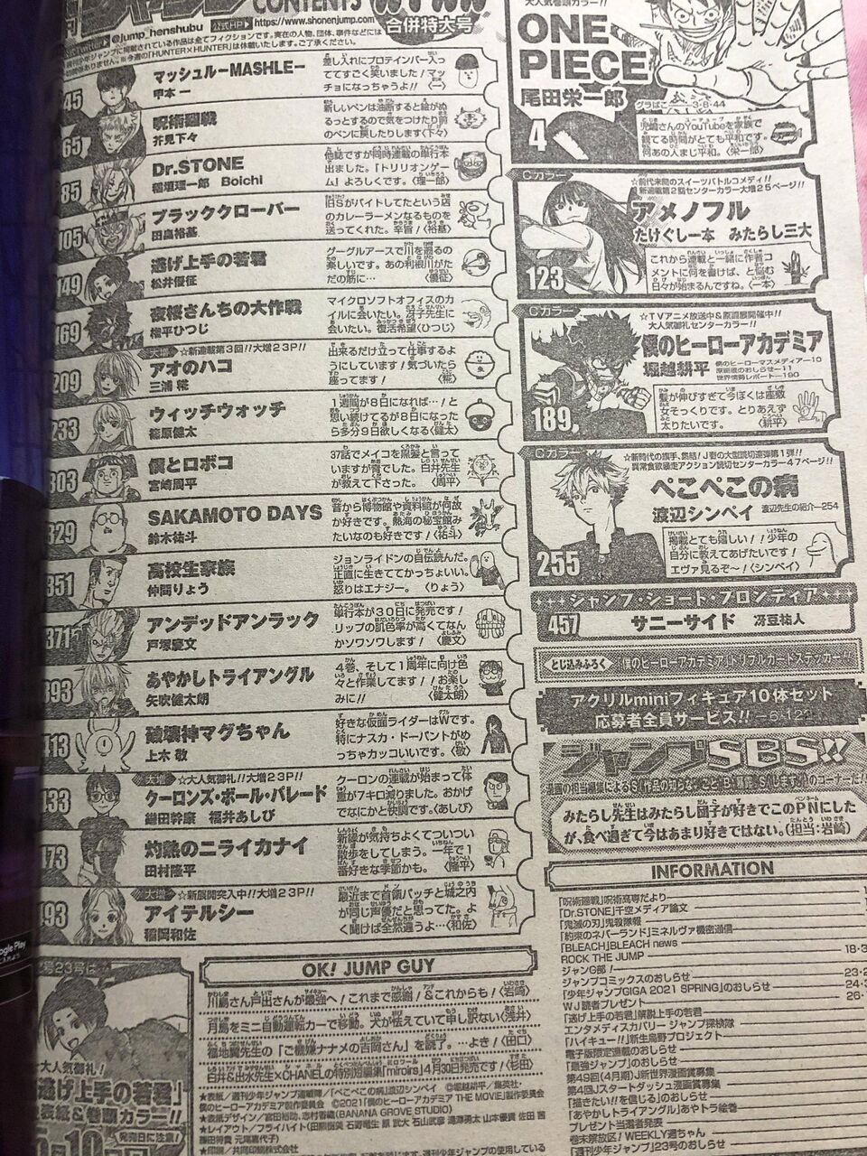 巻頭だけならサム8以来、表紙と巻頭ダブルは多分暗殺教室以来やな